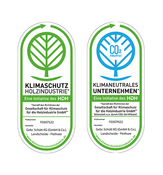 Seit Juli 2022 ist die Gebrüder Schütt KG Mitglied in der Initiative Klimaschutz Holzindustrie. In Zusammenarbeit mit der Gesellschaft für Klimaschutz für die Holzindustrie GmbH wurde eine umfassende CO2-Bilanz des Unternehmens angefertigt. Somit wurden Emissionsquellen und Reduktionpotenziale identifiziert. Durch den Bezug und die Eigenerzeugung von Ökostrom, leistet das Unternehmen bereits einen wichtigen Beitrag zum Klimaschutz. Derzeit nicht vermeidbare Emissionen hat das Unternehmen durch den Erwerb von CO2-Zertifikaten kompensiert. Dafür wurden Projekte in Kenia für die Nutzung von effizienten Kochöfen (Verified Carbon Standard)und die Herstellung von Bioenergie in Vietnam unterstützt. Somit wirtschaftet die Gebrüder Schütt KG seit 2022 klimaneutral.